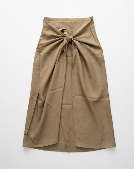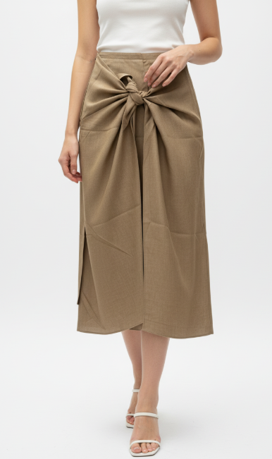 Style: Midi-length skirt with unique front knot detail