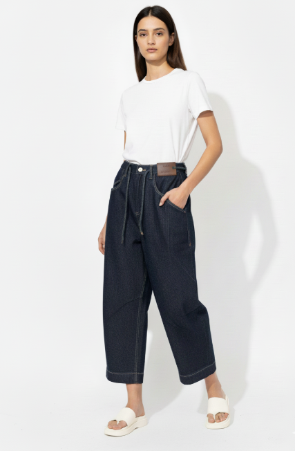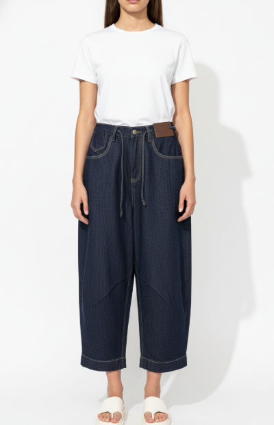Featuring a practical drawstring waist and a unique barrel-leg cut, they provide both effortless style and all-day comfort. The minimalist design with subtle stitching and a signature brown belt tag makes them a versatile staple for any contemporary wardrobe.