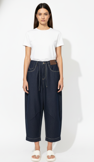 Design: Wide-leg, cropped culotte style with a barrel-leg silhouette.
