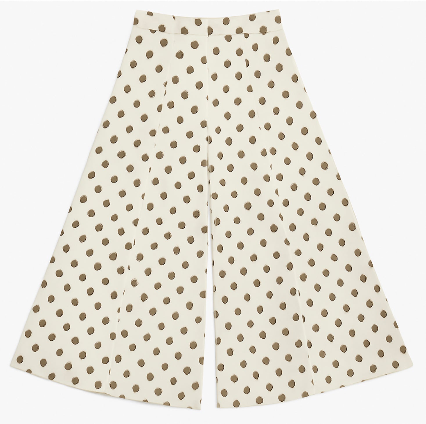 Serving drama with every step—these wide-leg pants are made to twirl, strut, and steal the damn show. The all-over mocha polka dots pop against a creamy base, and the exaggerated flare? It’s giving main character energy. High-waisted for a snatched silhouette and cut with movement in mind, these pants say: Yes, I brunch... but I do it loud.