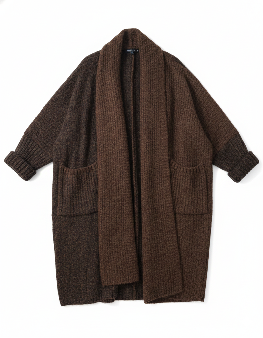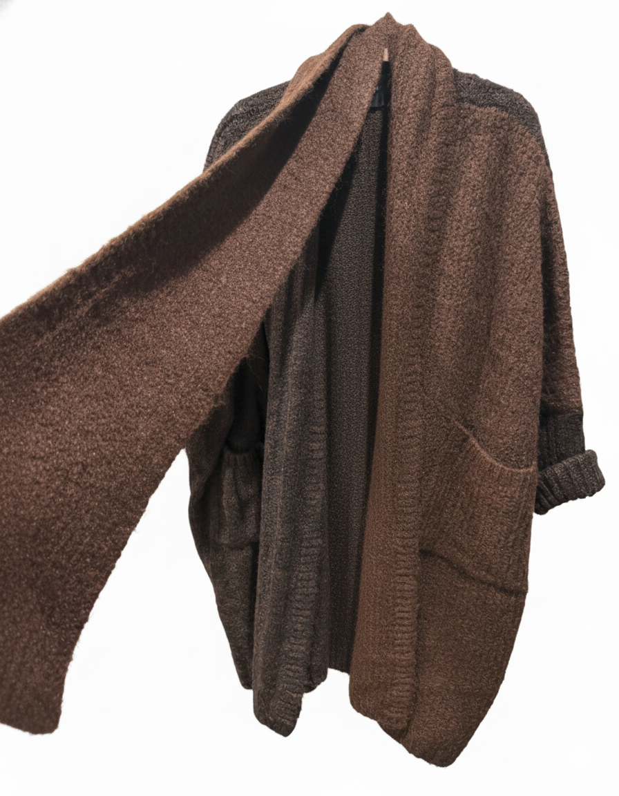 Featuring practical, roomy pockets and a beautifully integrated scarf that can be styled in multiple ways – from a graceful drape to a snug wrap – this cardigan is designed for both fashion and function.