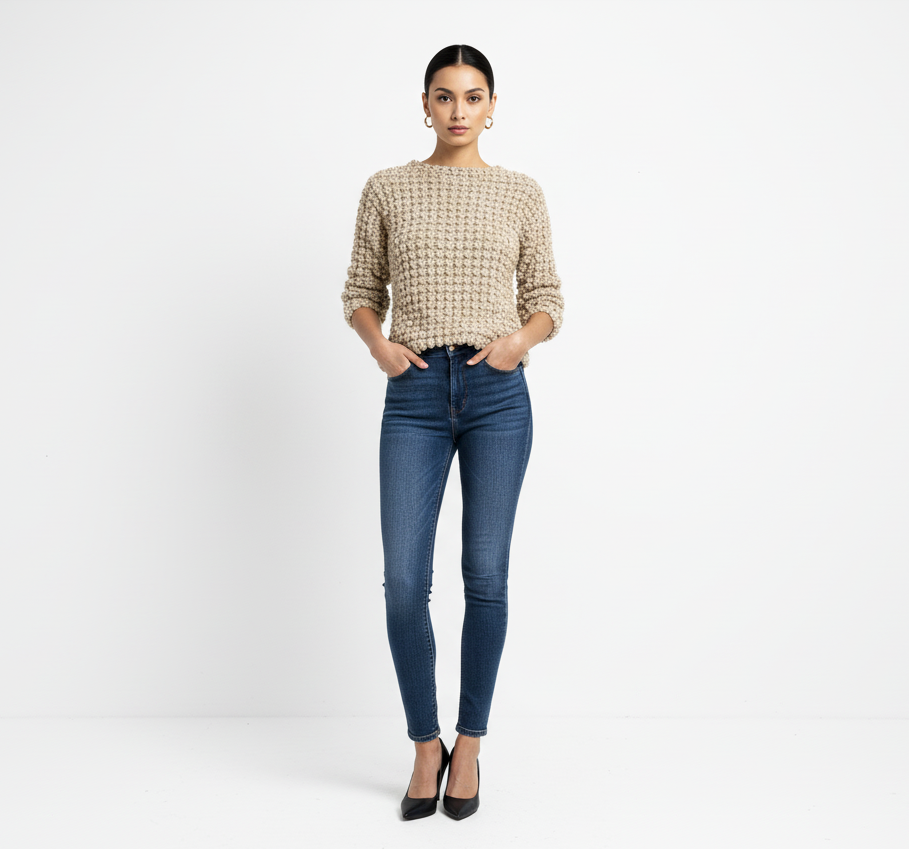 Elevate your everyday style with our "Textured Chic" Knit Sweater. This exquisite piece features a unique, intricate knit pattern that adds rich texture and visual interest, making it a standout addition to any wardrobe.