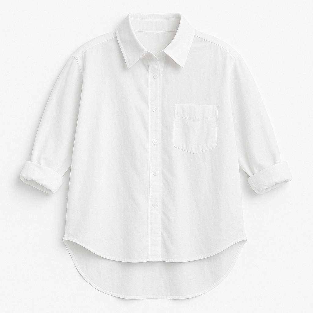 This isn’t your boyfriend’s button-down—it’s better. With a dramatic high-low hem and an exaggerated collar that brings the drip, this blouse was made for layering, styling, and shutting down basic vibes. The crisp white cotton gives effortless cool while the oversized silhouette floats just right. It’s structured, but make it brunch-worthy.